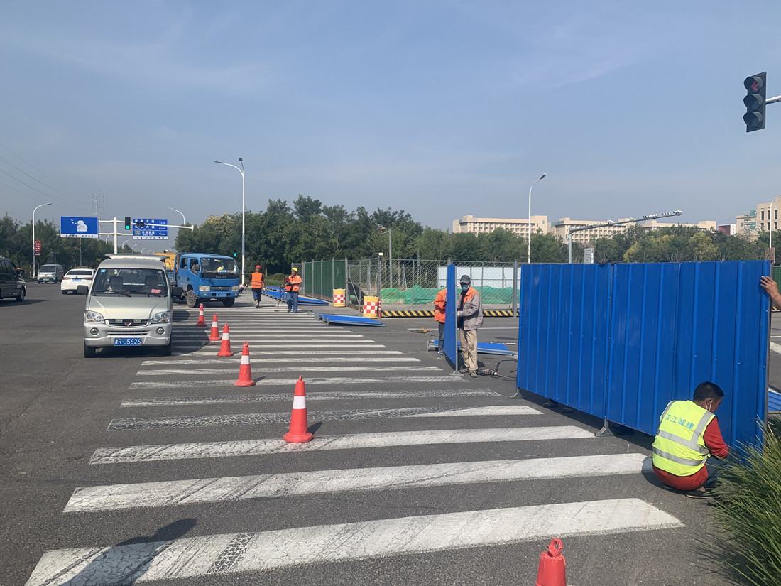经过连续6个多小时的奋战,近500米的道路竖起围挡,通道被成功封闭。从接到通知到安排部署,从组建团队到原料搬运,从安装搭设到完成交付,项目施工人员反应迅速,一丝不苟,齐心协力完成围挡建筑任务。