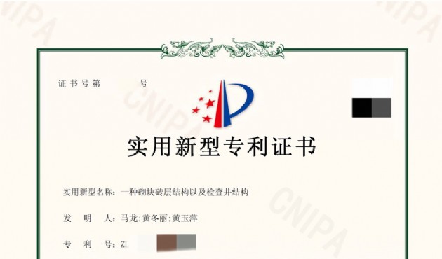 近日,亚美体育官方app下载新原料公司申报的专利《一种砌块砖层结构以及检查井结构》荣获国家知识产权局授予的实用新型专利证书,这为汉江城