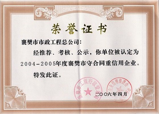 2004-2005襄樊市守合同重信用企业