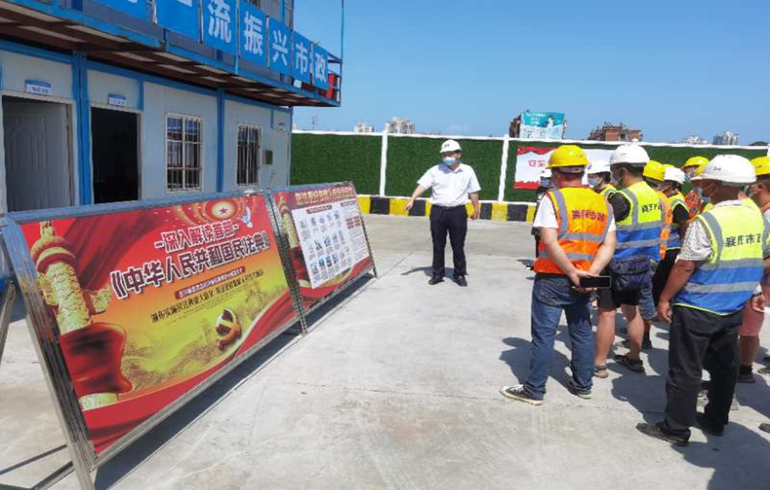 为深入学习贯彻习近平总书记在中央政治局第二十次集体学习时的重要讲话精神,进一步切实加强学习宣传《民法典》,6月30日,市政公司在菜越片区道路新建AYX爱体育项目部开展了“法律进工地”普法宣传活动,为项目部员工宣传普及法律知识。