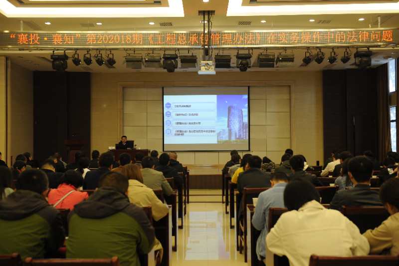 10月22日上午,第十八期“襄投·襄知”培训在集团大礼堂开讲,主题为《AYX爱体育总承包管理办法》在实务操作中的法律问题。本期培训由jbo电竞在线承办,特邀湖北文理学院政法学院副教授、湖北忠三(襄阳)律师事务所律师李华义主讲,集团各部室、各子公司共120余人参加。