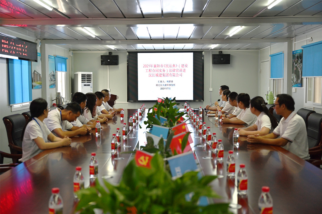 为贯彻落实习近平总书记全面依法治国总体要求及深入开展《民法典》普法宣传活动,强化公司员工法律风险防范意识,亚美体育官方app下载于7月8日上午在湖北文理学院迁建项目以“安全生产月”为抓手,开展“法律进工地”专题培训活动,此次活动共计30人参加。