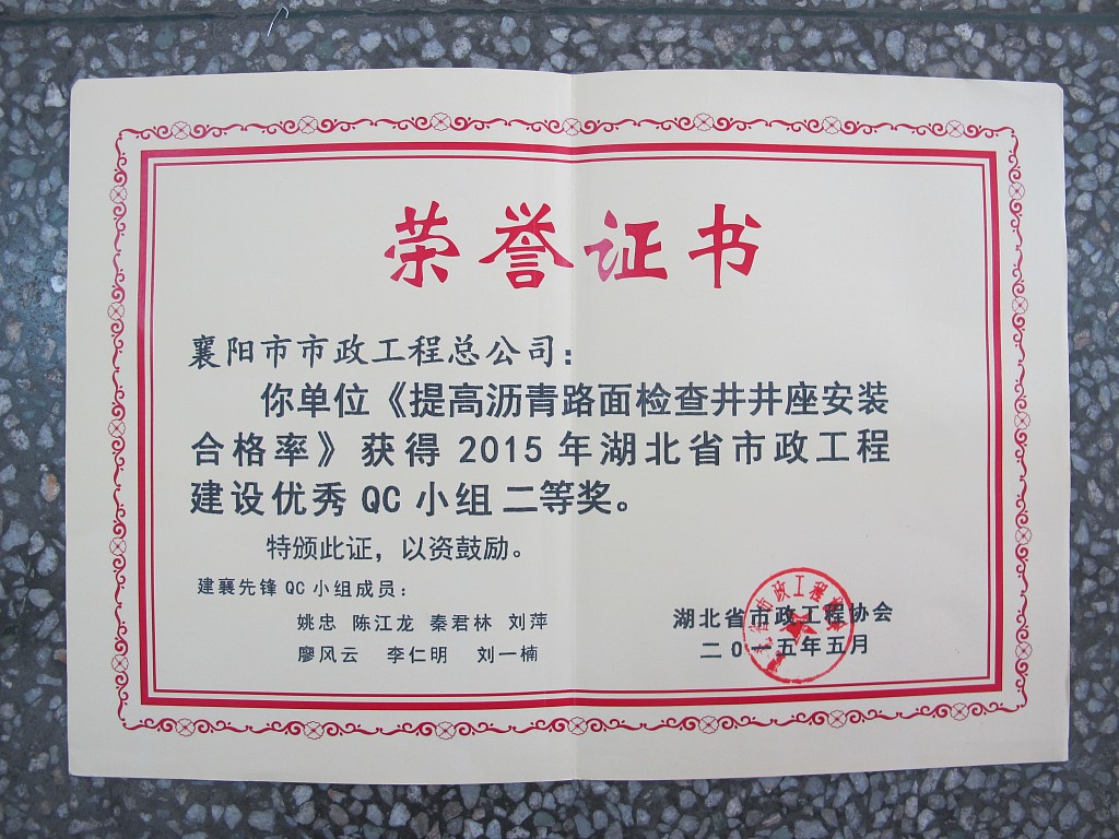 2015沥青路面井座安装合格率湖北省优秀QC二等奖