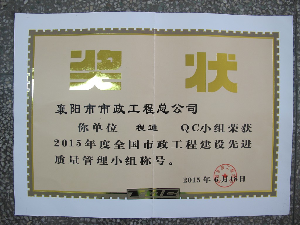 2015全国市政先进质量管理小组称号