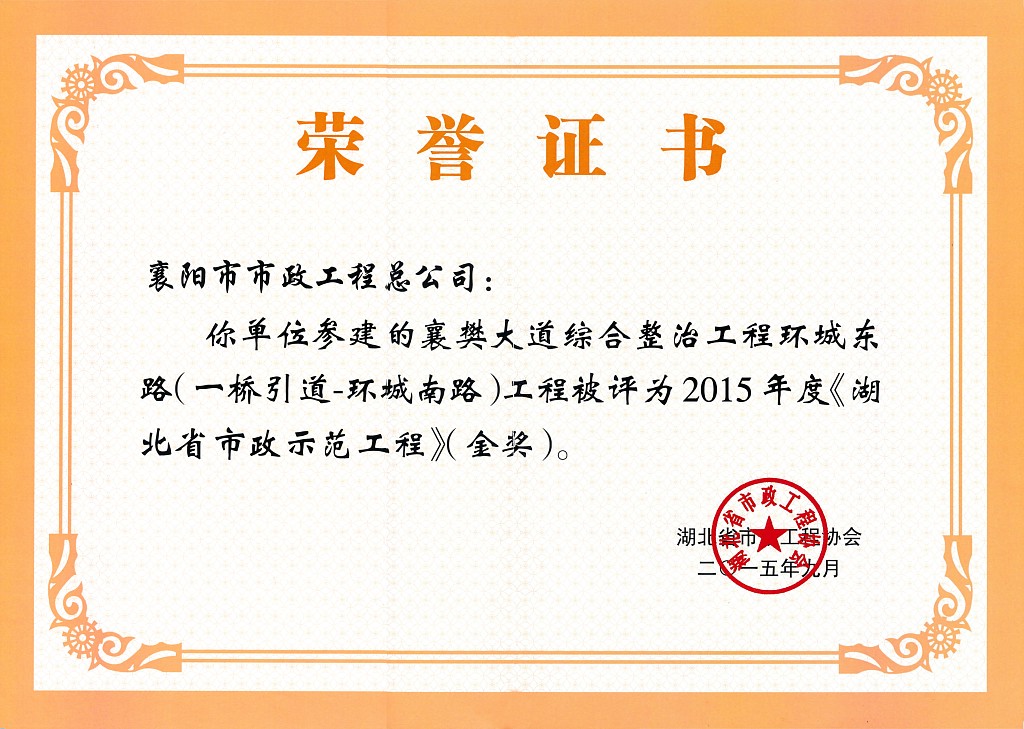 2015襄樊大道综合整治全国市政金杯示范AYX爱体育