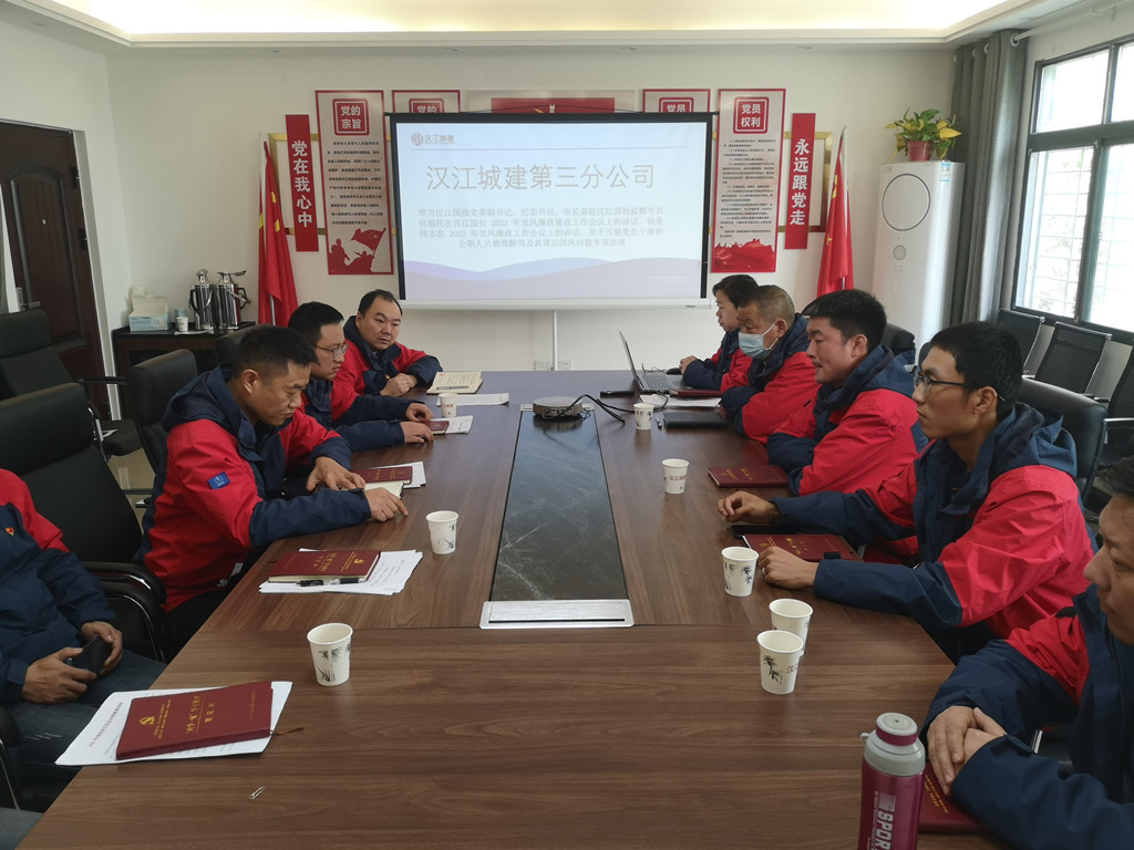 为深入贯彻学习汉江One电竞 2022 年党风廉政建筑工作会议精神,落实监察审计部相关要求,3月18日,第三分公司组织全体党员干部召开了专题学习会议,会议由支部书记李爱国同志主持。