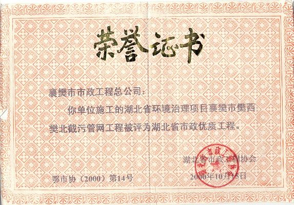 2000年截污管网AYX爱体育(省优)