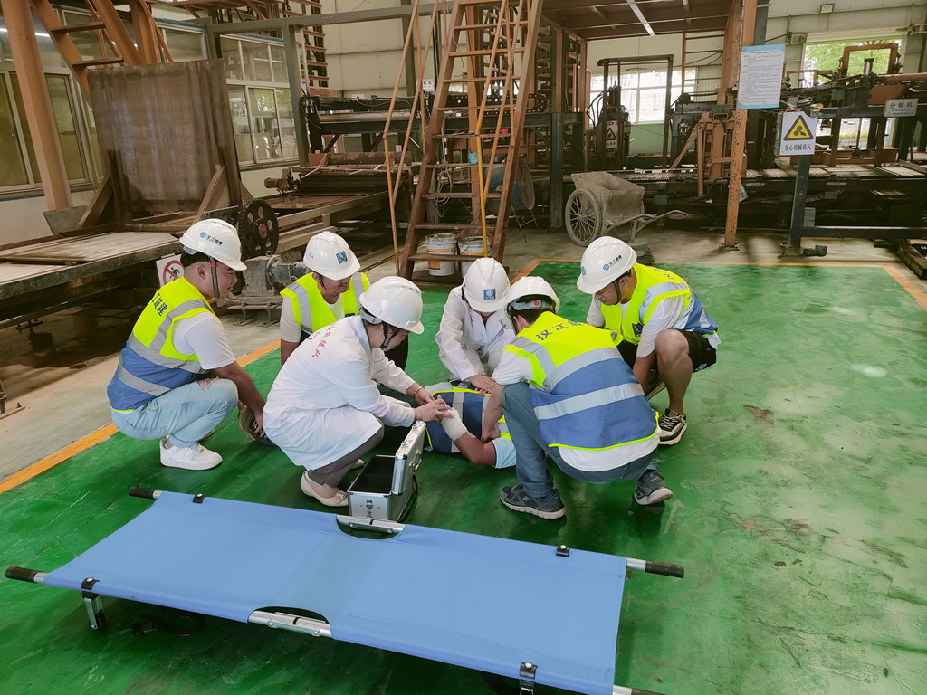 此次演练采用场景设置、实战参演等方式进行。演练现场设在新原料公司制砖车间,模拟在设备维修过程中,现场作业人员不慎从平台坠落。“不好啦,有人掉下来了!”随着一声高呼,应急演练拉开序幕。在高空坠落事故发生后,现场安全管理人员听到呼救后,迅速查看伤者情况,同时打电话报告经理,得到请示后,立即启动了《高空坠落事故应急救援预案》,同时向120请求救援。在应急预案领导小组组长统一指挥下,协调组织应急救援组、警戒保卫组、医疗救援组、通讯联络组齐奔现场,各组各司其职,演练现场井然有序、配合紧密,最后应急救援车辆和医疗人员将伤员送往医院,保证了伤者第一时间得到正确、有效救治,消除了事故影响,及时恢复了生产。演练结束后,还及时组织相关人员召开了总结会。