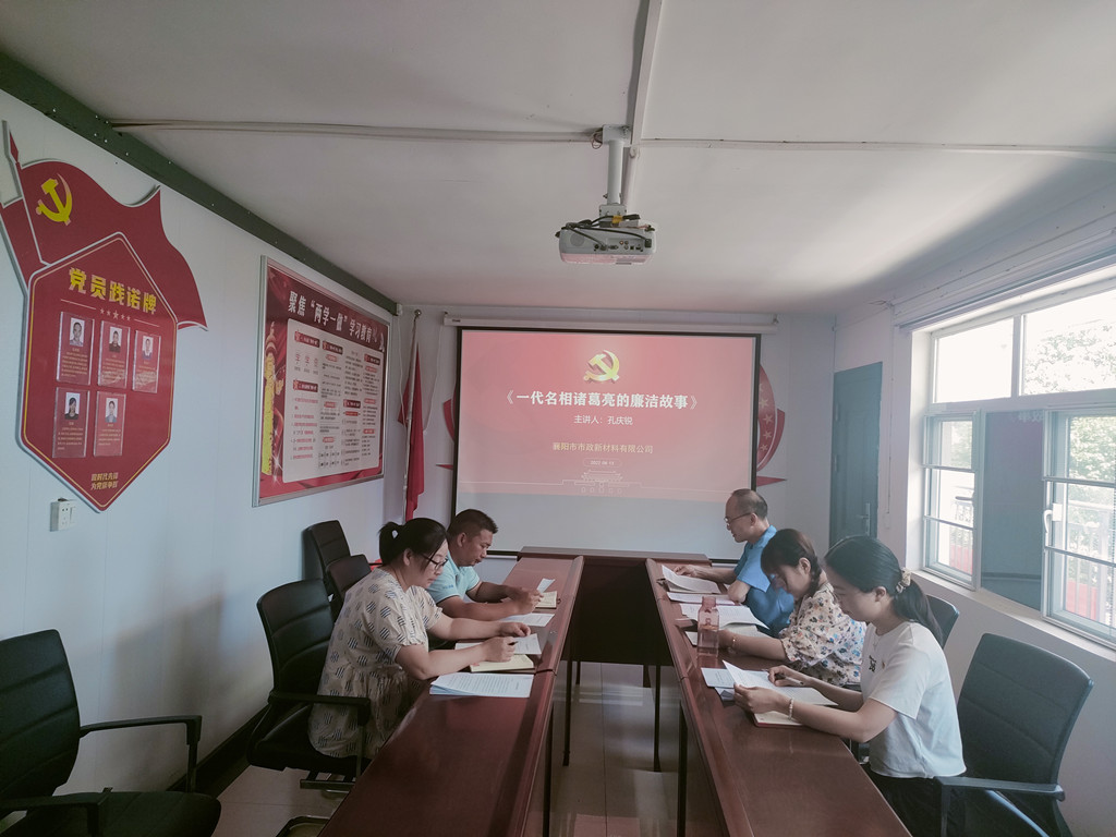 为进一步加强廉政文化建筑,大力宣讲廉洁理念,广泛弘扬清风正气,增强党员干部的廉洁自律意识,近日,新原料公司组织全体党员在会议室开展了以“一代名相诸葛亮的廉洁故事”为主题的廉洁文化宣讲活动。