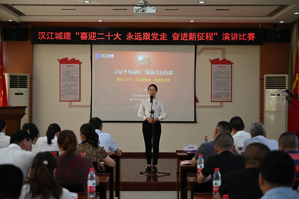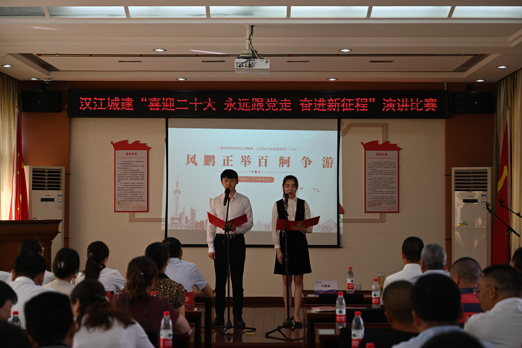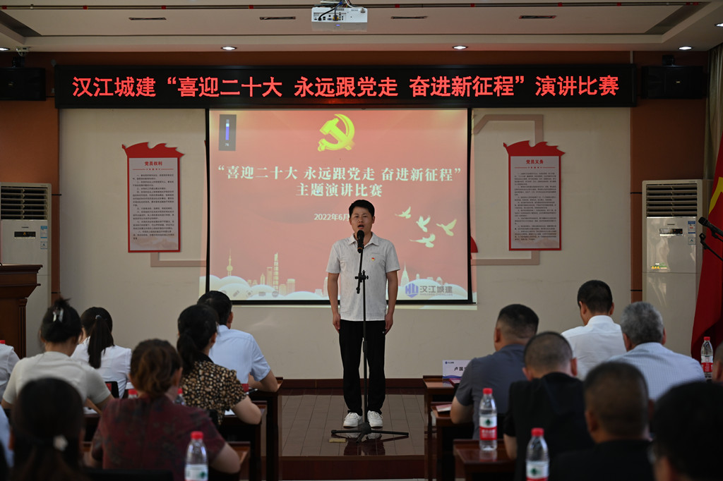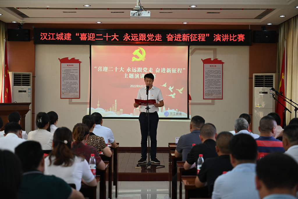 随着《没有共产党就没有新中国》的音乐声响起,活动在全体人员的大合唱中拉开序幕。首先,举行了2022年度新党员入党宣誓仪式,公司领导为2022年发展的新党员佩戴党徽,新党员和全体老党员面向鲜红的党旗进行了庄严宣誓。随后,党委书记、董事长卢国宏代表公司党委为本次活动致辞,向公司全体党员致以节日的问候,向2022年被批准加入党组织的新党员表示热烈的祝贺,并预祝演讲比赛活动取得圆满成功。