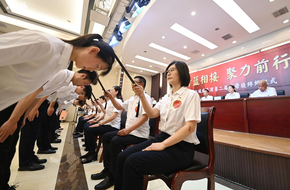 此次活动主要是表彰第一届9对优秀师徒,以及开展第二届“师带徒”拜师仪式。拜师仪式庄严而肃穆,拜师改口、徒弟承诺、师傅戒尺加身、师徒互赠礼,一共有49对新师徒共同签订师徒协议。