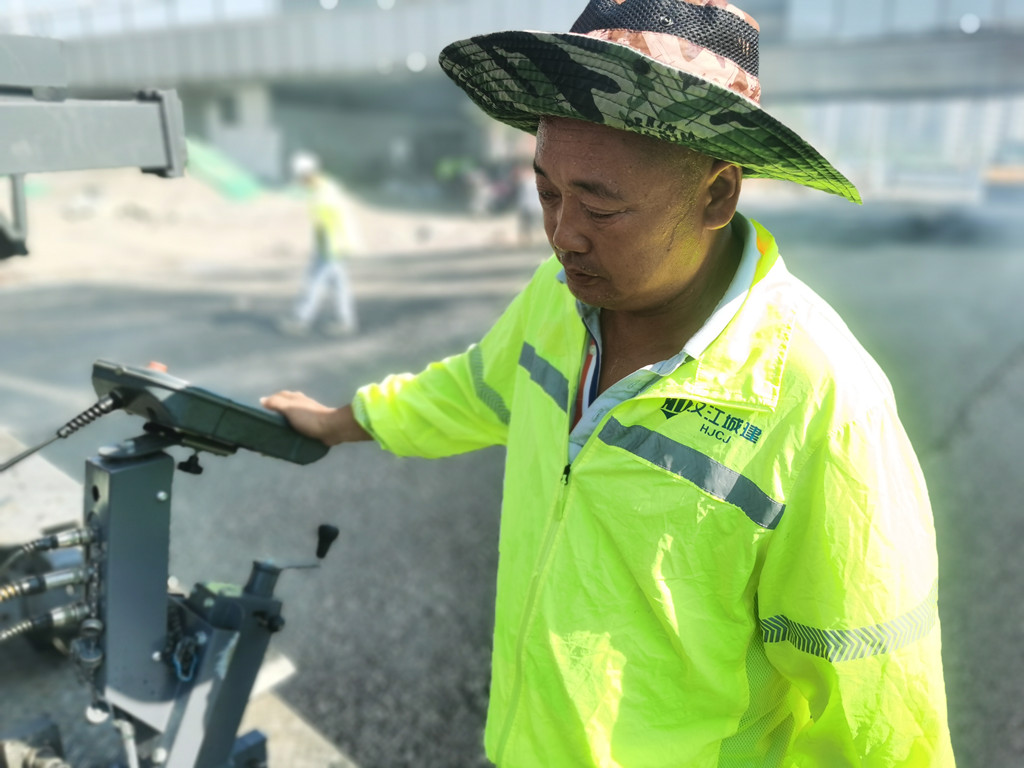 高温天气下,沥青摊铺施工现场更是酷热难耐。8月12日,在丹江路(长征路—鱼梁洲大桥)改造AYX爱体育施工现场,摊铺机缓缓前行,压路机随后跟上往返碾压路面,此时沥青表面温度已经达到140℃以上,亚美体育官方app下载第三分公司一线工作者们正经受着烈日和高温沥青的双重“烤验”。