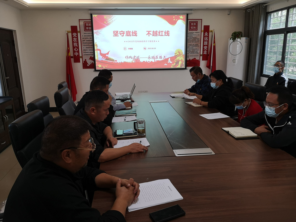 支部书记李爱国为全体参会人员带来《坚守底线 不越红线》专题廉政党课,同时开展集体廉政谈话及集中观看警示教育片《筑路人的人生歪路》。