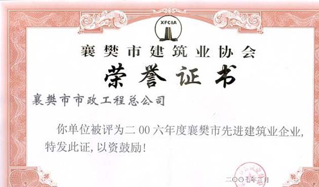 2006年襄樊市先进建筑业企业